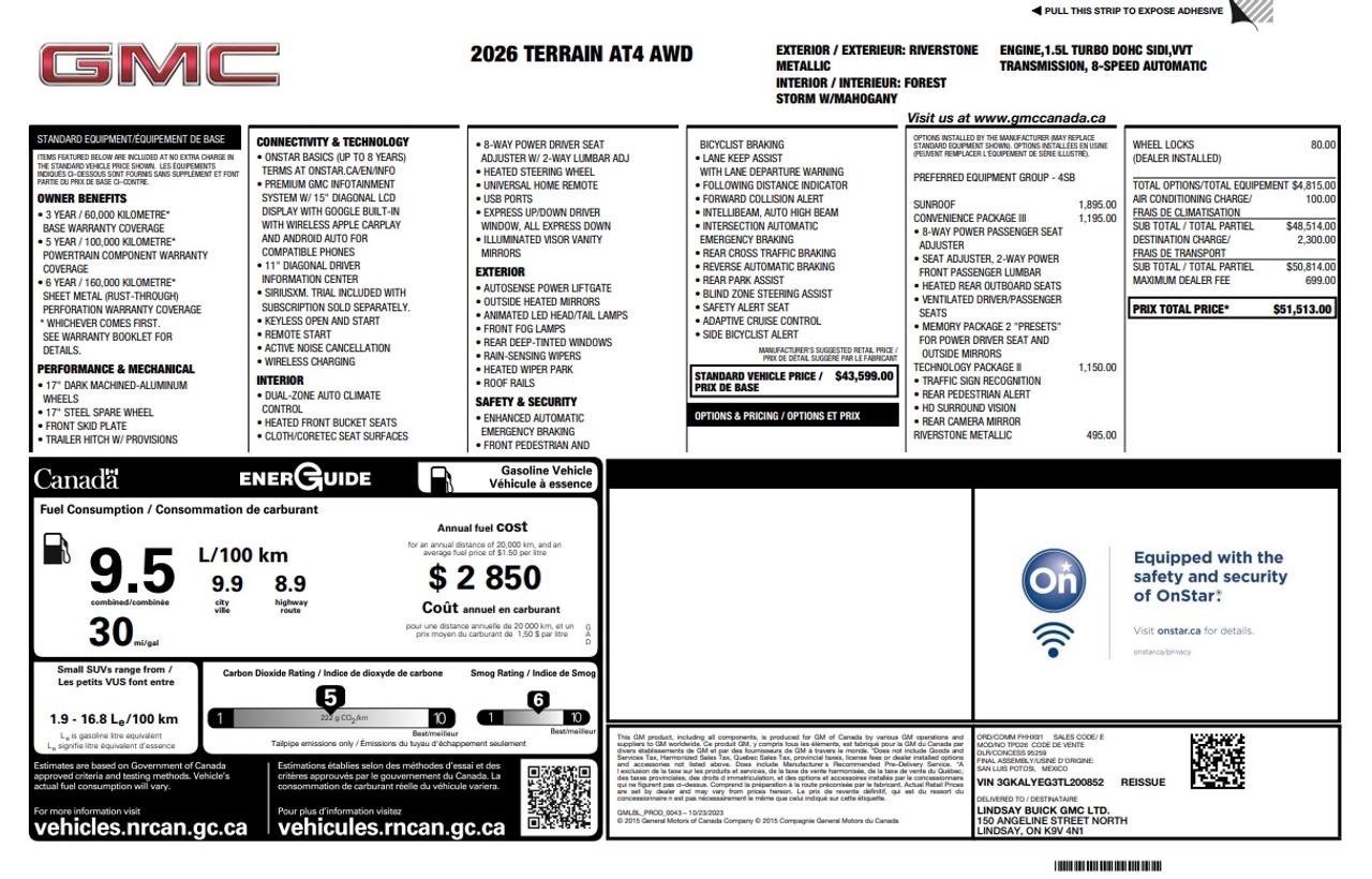 Disclaimer* Price shown includes deductions for currently applicable incentives, and applicable charges for freight, AC Tax, Green Levy (if applicable), additional options and accessories, fuel fill charge, dealer PDI, and administration fees; but excludes charges for licensing (where necessary), PPSA (if financing or leasing), and all applicable sales taxes.